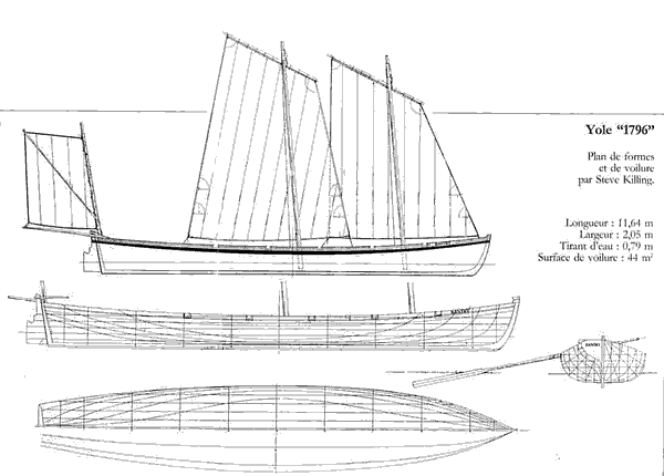 C’est parce que la coque a été conservée dans un musée en Irlande et que la série moderne a été relancée par un anglo-saxon, Lance Lee, que le terme ‘yole’ s’est imposé. Il suffit de rechercher l’étymologie du mot ‘yole’ pour reconnaître que ce nom féminin vient du danois jolle et du néerlandais jol et désigne à l’origine « une embarcation légère et allongée, d’un faible tirant d’eau, propulsée généralement à l’aviron ». Donc l’origine anglo-saxonne du terme est évidente mais la spécificité ‘voile-aviron’ douteuse. S’agissant de l’embarcation de l’amiral Nielly, embarqué sur La Résolue en 1796, ce type d’embarcation porte un nom traditionnellement utilisé dans la marine, encore aujourd’hui, il s’agit de ‘chaloupe’, lequel désigne la plus grande embarcation mue à la voile et/ou à l’aviron embarquée sur un navire, à ne pas confondre avec le canot, qui est un terme générique mais appliqué aux navires de la marine en bois, désigne au contraire l’embarcation de la plus petite taille. Le terme de ‘canot-major’ désigne l’embarcation particulièrement utilisée pour effectuer les mouvements d’embarquement et de débarquement des officiers d’un navire, alors que l’embarcation portant l’amiral s’appelle la ‘chaloupe amirale’.